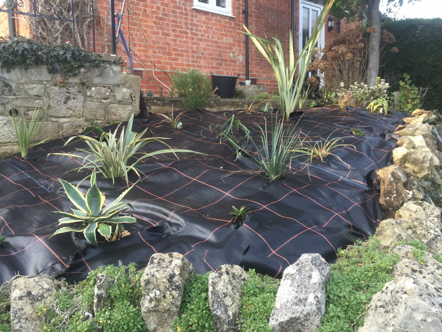 - Weed-suppressing membrane in place